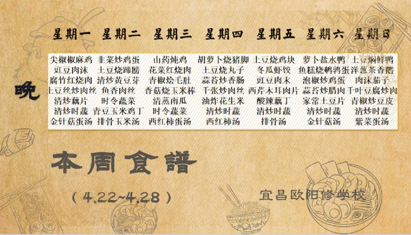 宜昌歐陽修學(xué)校每周食譜(4月22日至4月28日)