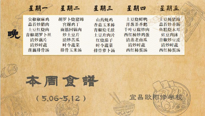宜昌歐陽(yáng)修學(xué)校每周食譜(5月06日至5月12日)
