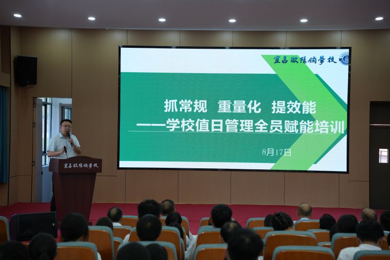 8月17日上午9時(shí),宜昌歐陽修學(xué)校2025年暑期教師培訓(xùn)在學(xué)術(shù)報(bào)告廳正式拉開帷幕,全體教職員工齊聚一堂,以飽滿的精神狀態(tài)迎接新學(xué)期的到來。