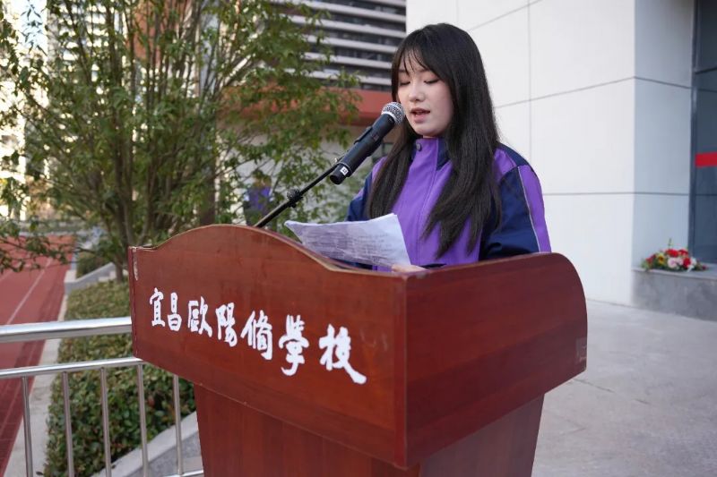 運(yùn)動(dòng)員代表303班曾昱文神情堅(jiān)毅地發(fā)表感言并宣誓,承諾將嚴(yán)格遵守比賽規(guī)則,尊重對手、尊重裁判、尊重觀眾,以飽滿的熱情、昂揚(yáng)的斗志全力以赴,賽出風(fēng)格、賽出水平,展現(xiàn)歐陽修學(xué)子的良好風(fēng)貌。