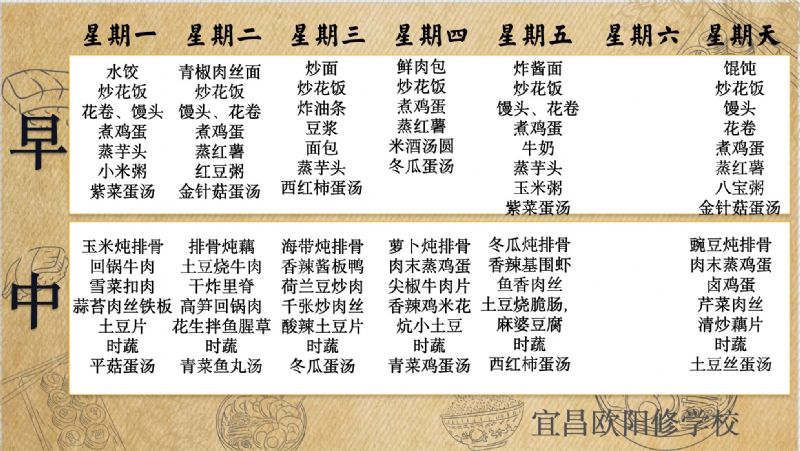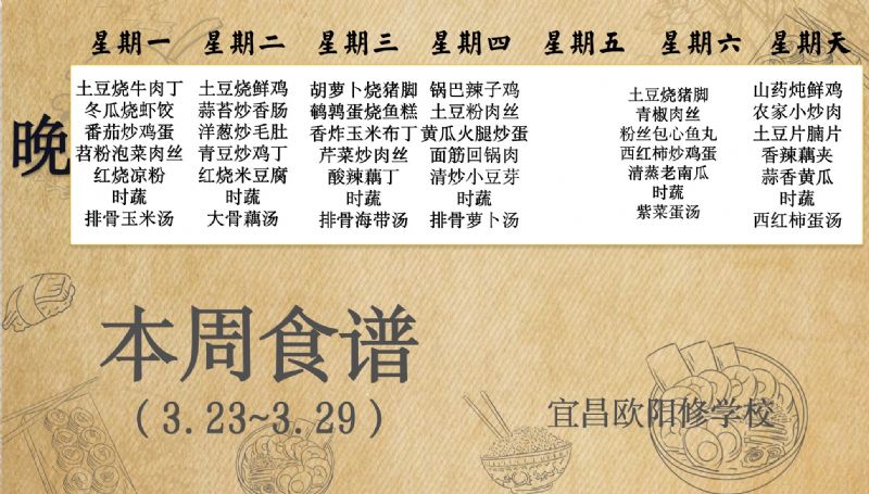宜昌歐陽修學校每周食譜(3月23日-3月29日)